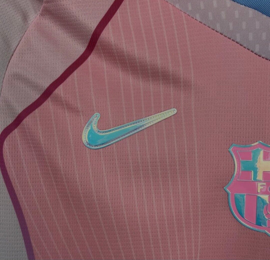 It features the F.C. Barcelona crest on the chest, a light green Nike swoosh, and the dark blue Spotify sponsor logo in the center.